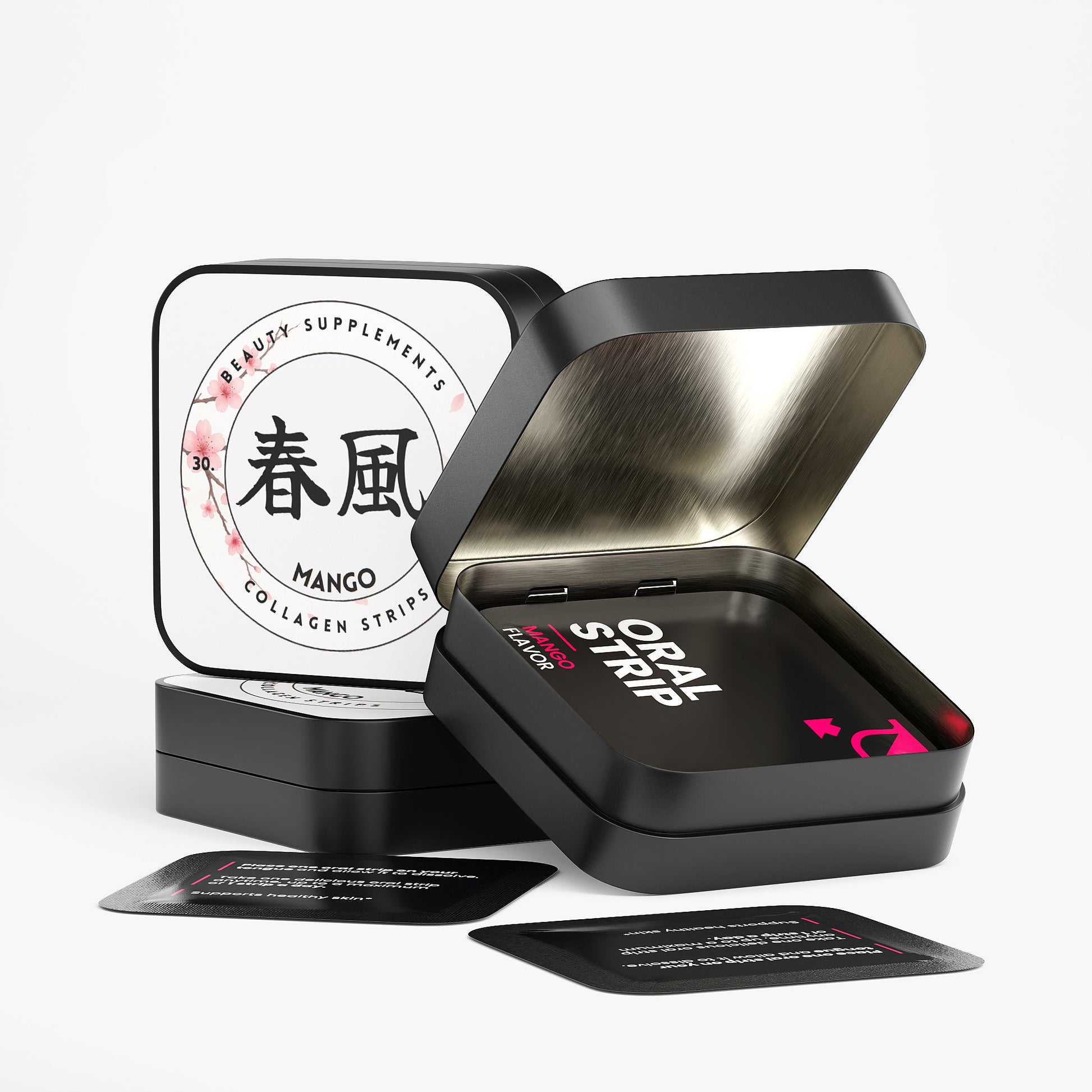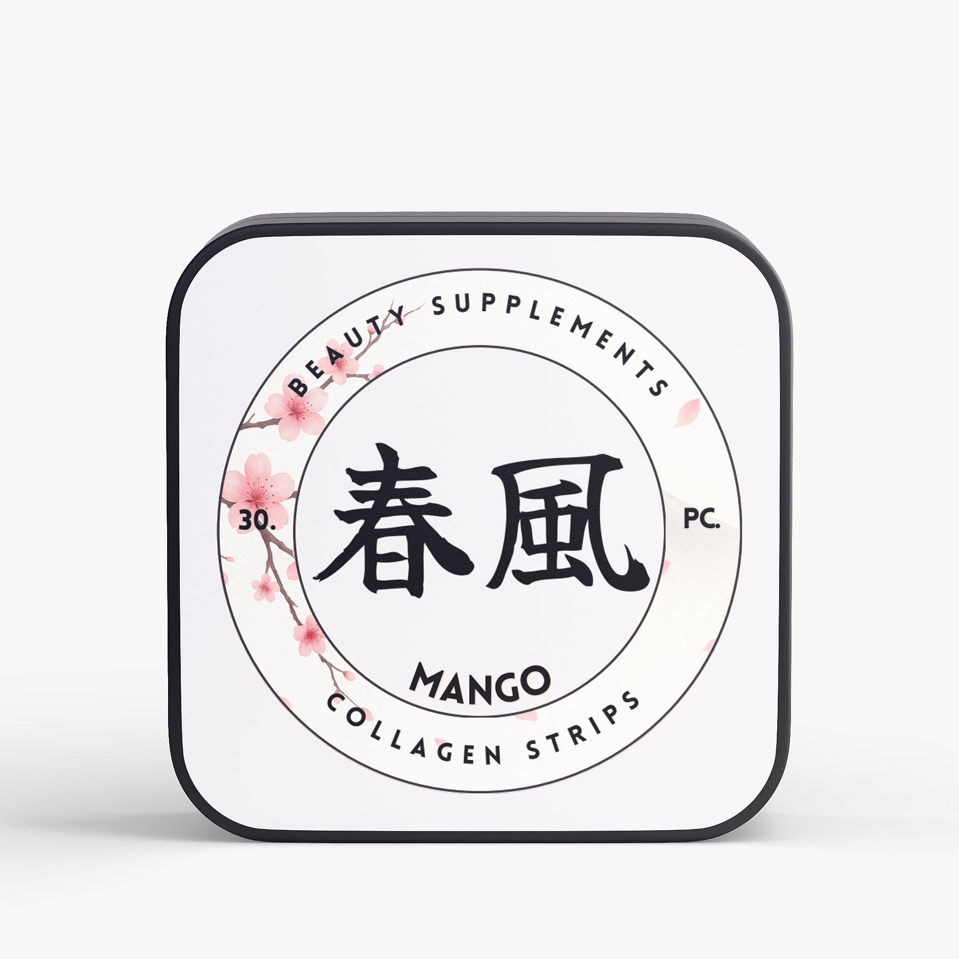 Ingredients: Collagen Peptide (100 mg), Vitamin E (DL-Alpha-Tocopherol) (6 mg), Pullulan, Cellulose, Lecithin, Mango Flavor, Malic Acid, Pectin, Monk Fruit Extract, Steviol Glycosides